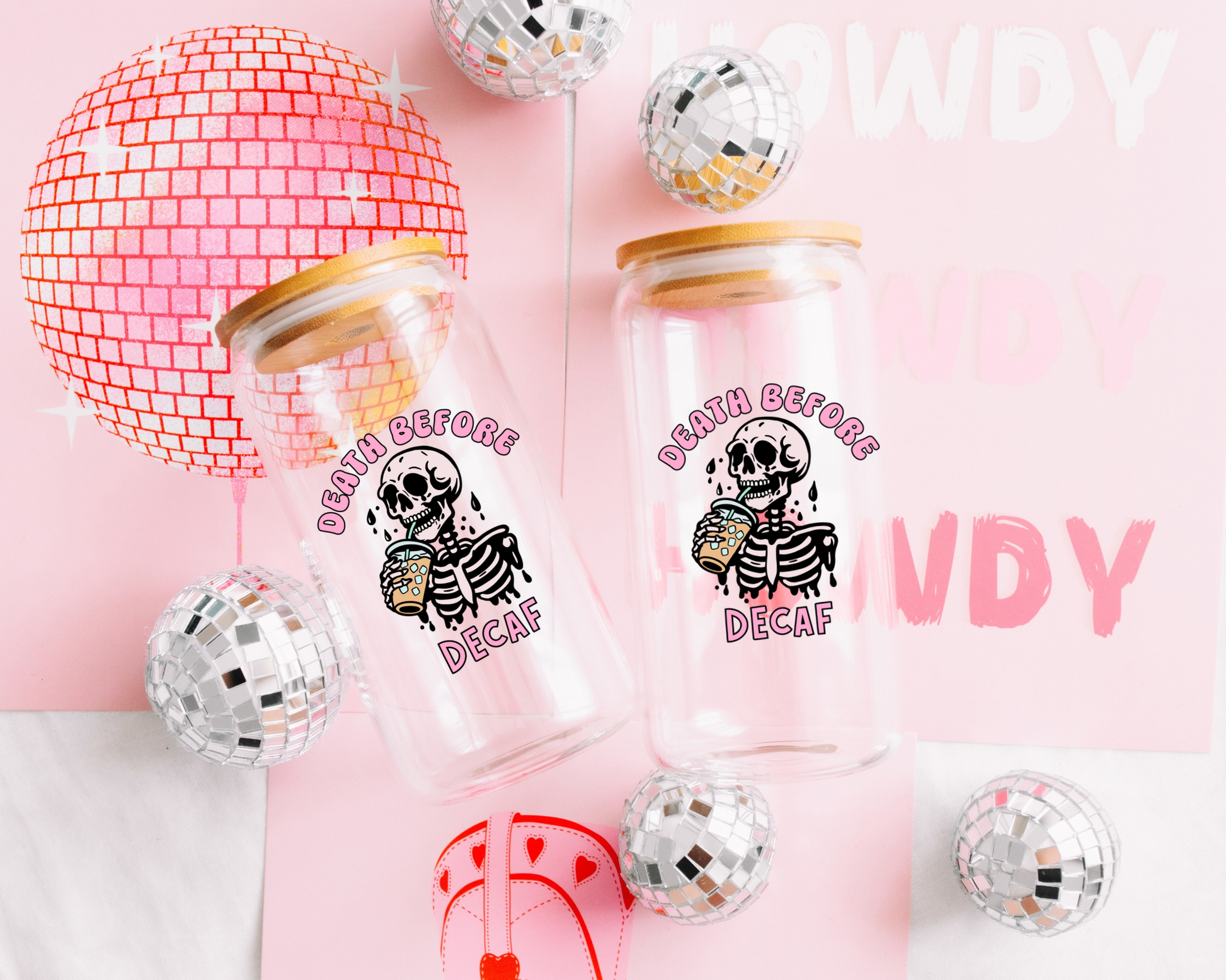 Death Before Decaf Glass Cup